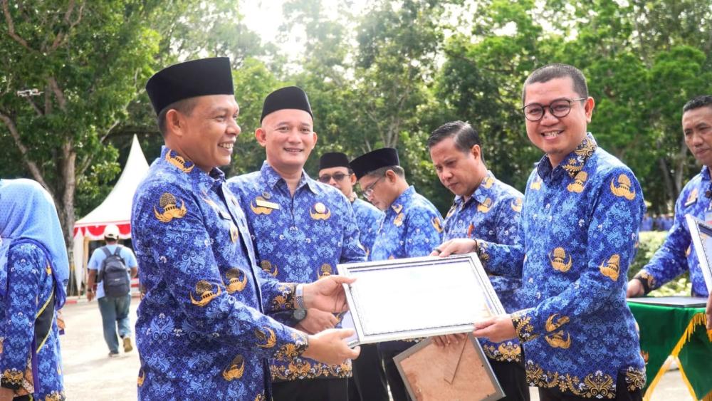 86saja.com, KONAWE – Bupati Konawe, H. Yusran Akbar, S.T., memberikan piagam penghargaan kepada 7 Aparatur Sipin Negara (ASN) yang telah mengikuti Pelatihan Kepemimpinan Administrator (PKA). Piagam tersebut diserahkan usai Upacara Hari Korps Pegawai Republik Indonesia (KORPRI), di pelataran Kantor Bupati Konawe. Senin (1/12/2025).