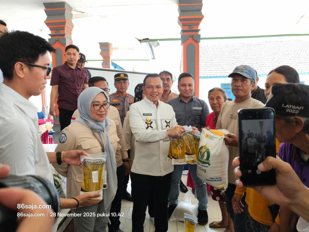 86saja.com, Bupati Konawe salurkan Bantuan Cadangan Pangan Pemerintah (CPP) Periode Oktober-November 2025 di Desa Ulu Benua, Kecamatan Amonggedo. Jum’at (28/11/2025).