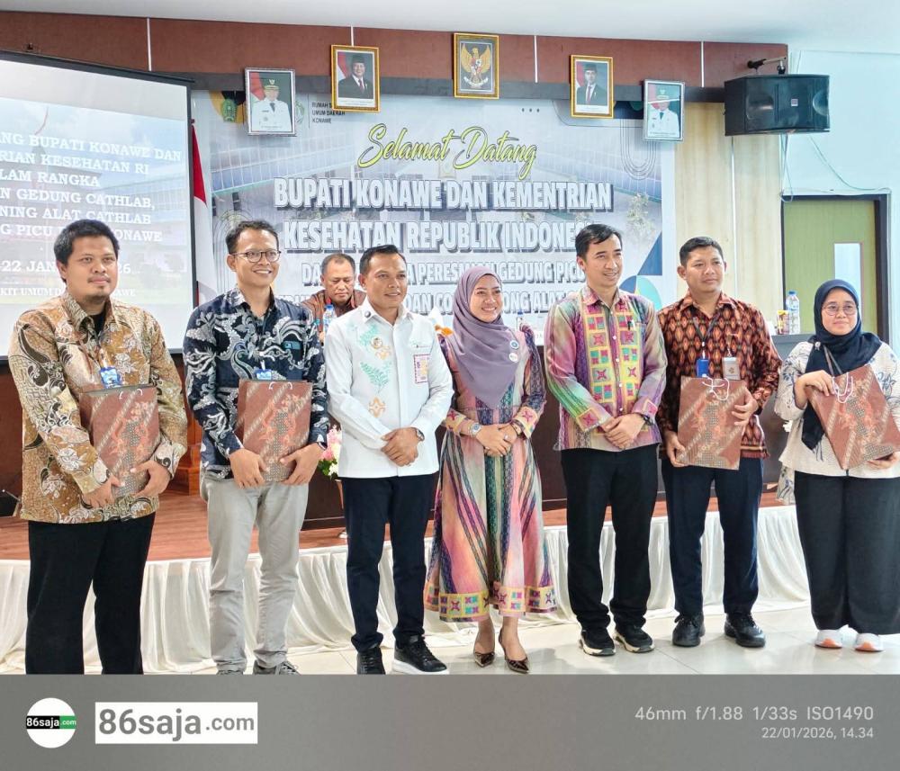 86saja.com, KONAWE – Tingkatkan layanan kesehatan dan saran penunjang, Bupati Konawe, H. Yusran Akbar, S.T, meresmikan Gedung Pediatric Intensive Care Unit (PICU) dan Gedung Catheterization Laboratory Jantung (Cathlab) sekaligus penyerahan alat Cathlab dari Kementerian Kesehatan Republik Indonesia yang diwakili oleh Sri Astuti, Agus Irwanto Wibowo, Zaenal Musthofa, Anggota Wiguno kepada RSUD Konawe, berlangsung di Aula Diklat RSUD Konawe, Kamis (22/1/2026).