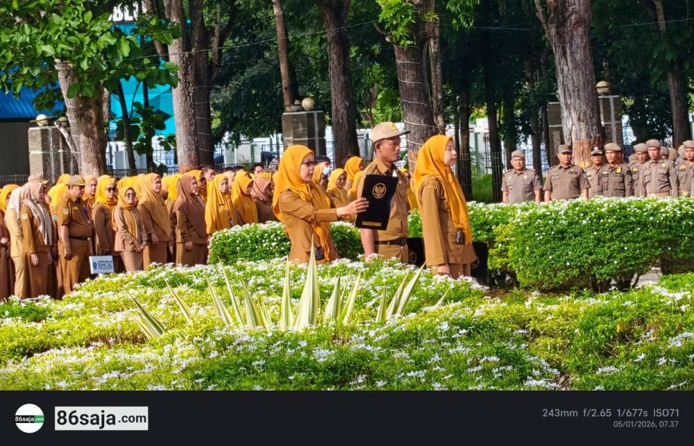 Yang pertama kata Bupati, ASN harus fokus kerja nyata, maksudnya tanggungjawab ASN bukan hanya sebagai seremonial tetapi dibuktikan dengan kerja nyata. Kemudian penyelesaian administrasi yaitu seluruh OPD wajib menyelesaikan laporan keuangan tahun 2025 termaksud pekerjaan fisik yang menyeberang tahun.